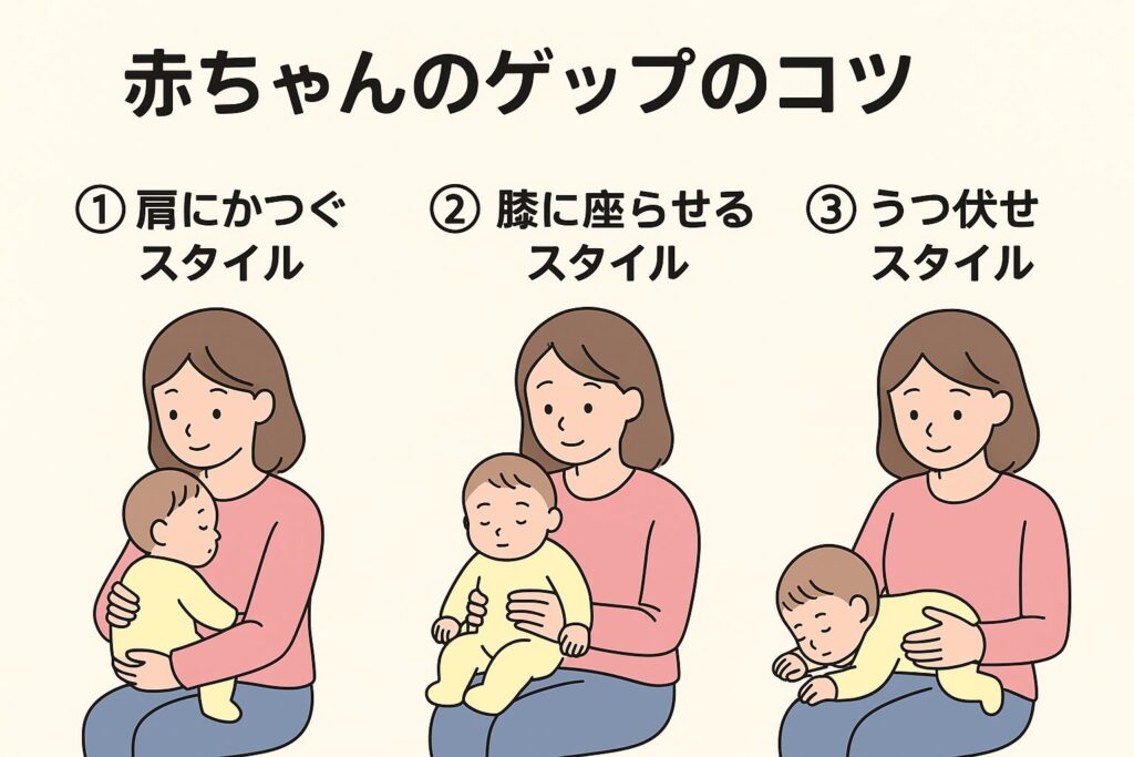 「今日も元気にゲップしてくれた!」そんな小さな成功体験を重ねながら、楽しい育児ライフを過ごしてくださいね。